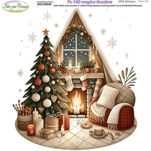 Pannello cm 25×25 Cucciolo con poinsettia rosa
