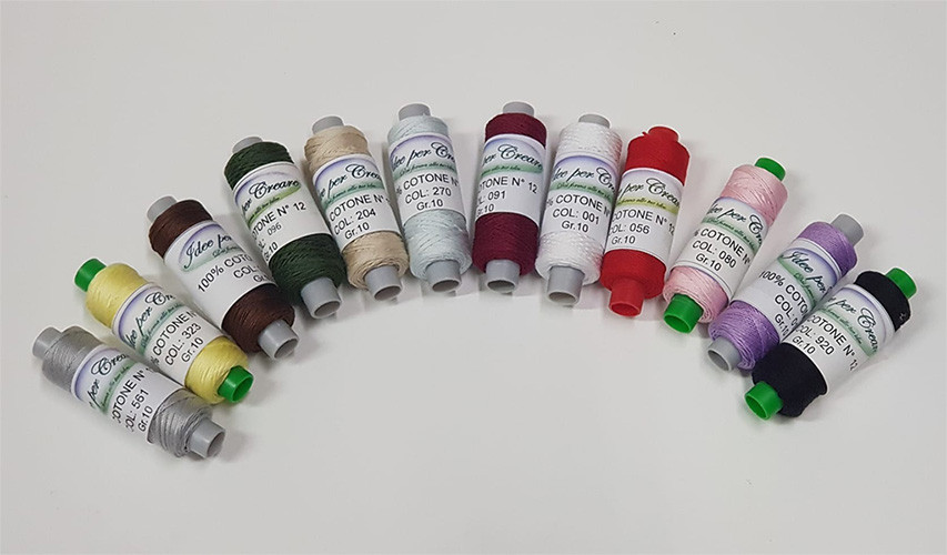 | Colore | 001 – Bianco, 005 – Rosa Antico, 013 – lilla, 035 – Marrone, 044 – Ottanio, 056 – Rosso, 080 – Rosa, 091 – Bordeaux, 096 – Verde Bosco, 178 – Nocciola, 204 – Ecru, 225 – arancio, 263 – Giallo Scuro, 265 – Giallo oro, 270 – Celeste, 323 – Giallo, 458 – Verde, 550 – Azzurro, 561 – Grigio, 607 – Ocra, 633 – Blu scuro, 722 – Viola, 920 – Nero, 921 – Verde Salvia |