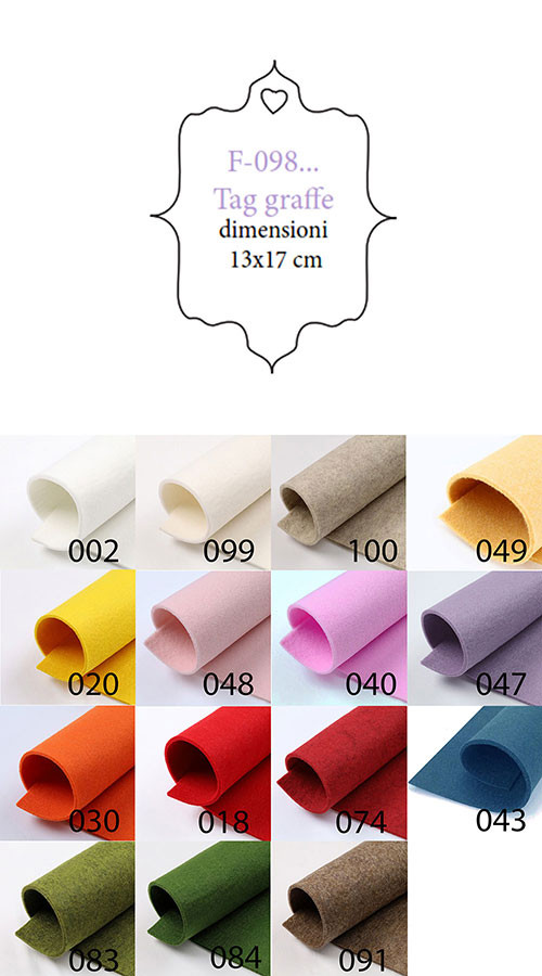 | Colore | 002 – Bianco, 018 – Rosso, 020 – Giallo, 030 – Arancio, 040 – Fucsia, 043 – Ottanio, 047 – Lilla, 048 – Rosa, 049 – Giallino, 074 – Rosso Melange, 083 – Verde Chiaro, 084 – Verde Scuro, 091 – Marrone melange, 099 – Panna, 100 – Panna Melange |